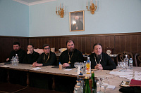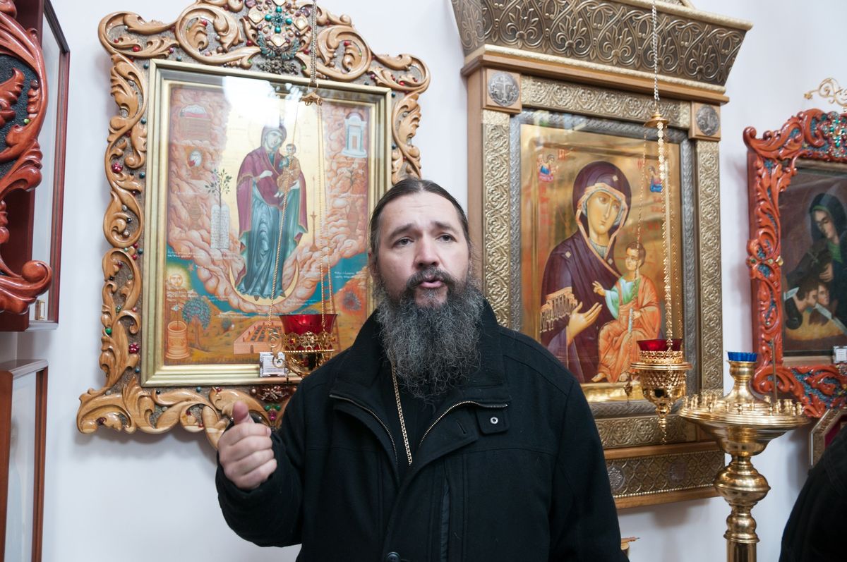 Перед началом собрания настоятель храма игумен Феофан (Замесов) рассказал об истории прихода, и воздвигнутых здесь храмов, которые наполнены множеством святых икон и мощами святых угодников Божиих.