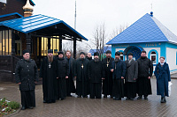 Приехавшие на собрание священнослужители познакомились с жизнью общины, пройдя по достаточно большой территории, где, кроме храмов, стоят жилые корпуса, хозяйственные постройки, баня и помещения для содержания коров, коз и домашней птицы.