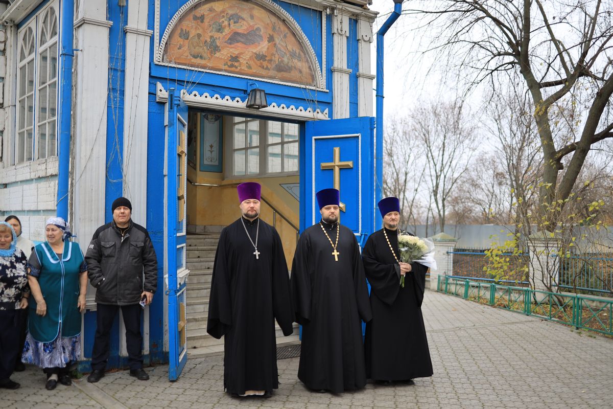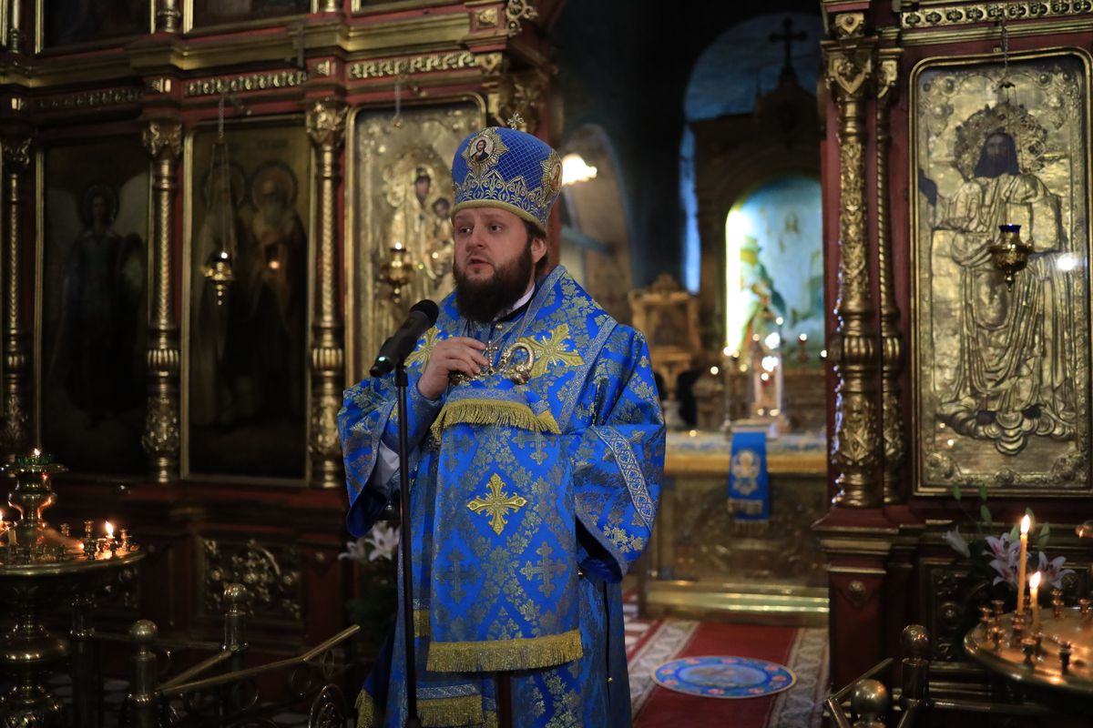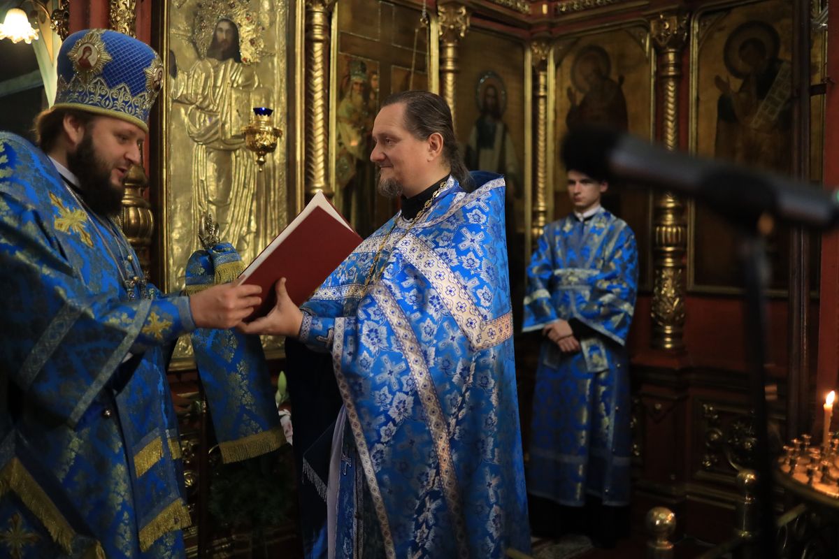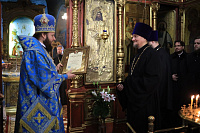 По окончании богослужения настоятель храма обратился к владыке с приветственным словом и в знак благодарности за совместное богослужение преподнёс в подарок книгу о Владимирской иконе Божией Матери.