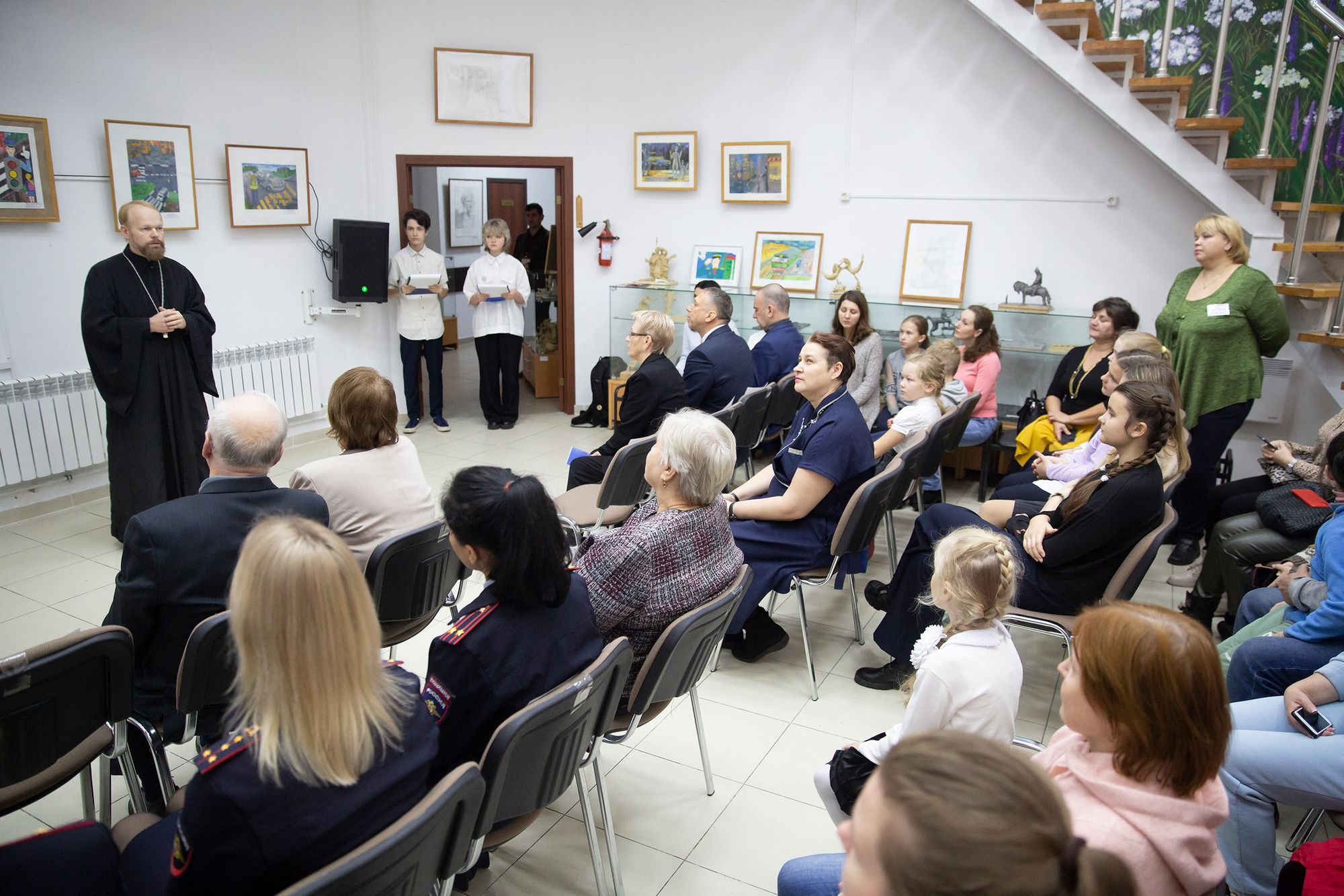 Отец Димитрий обратился со словами приветствия к собравшимся и пожелал творческих успехов юным художникам.