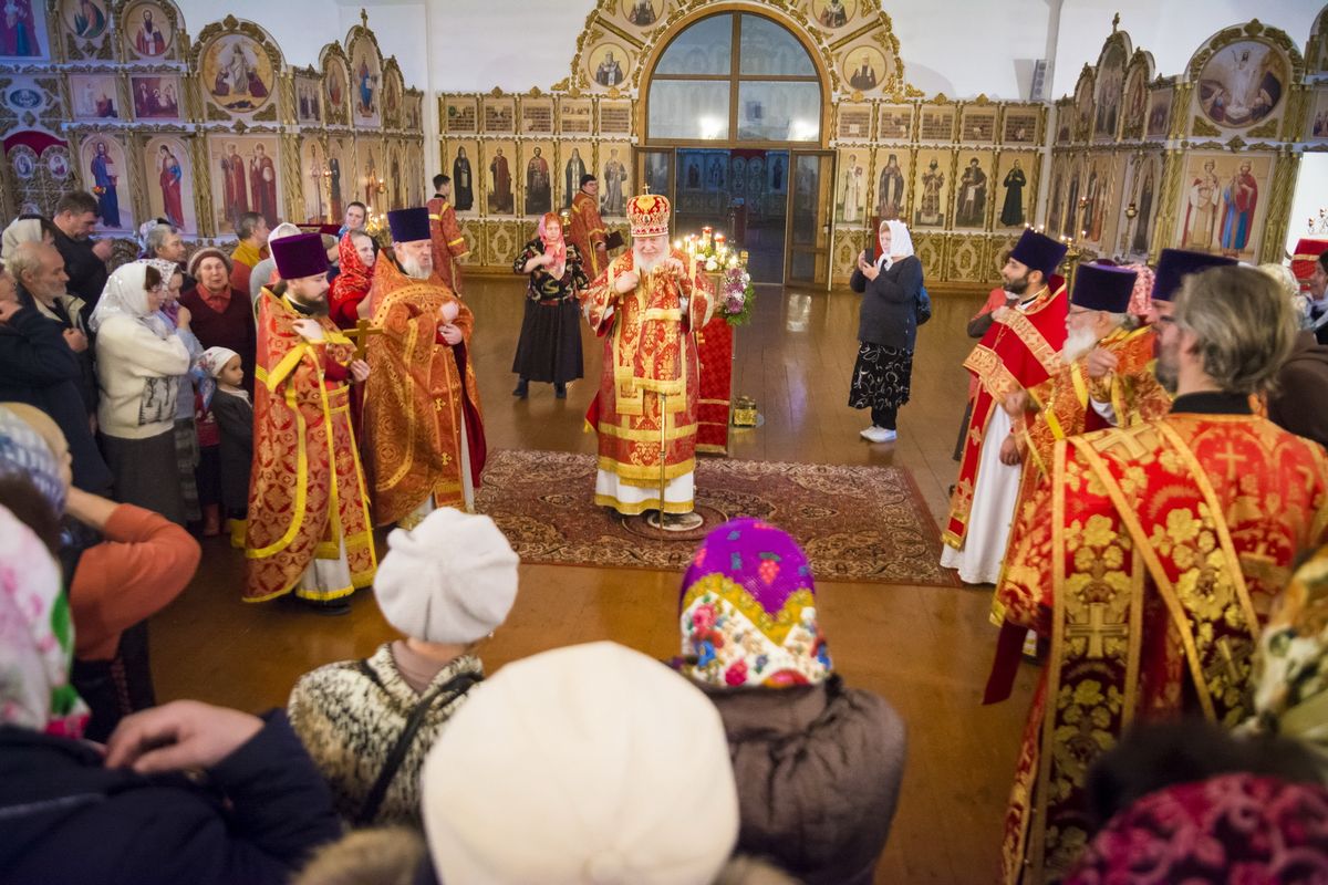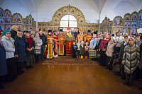 По окончании Литургии перед иконой праздника было совершено славление и возглашены уставные многолетия, после чего отец настоятель обратился к Владыке Николаю с приветственным словом.