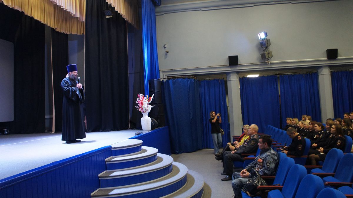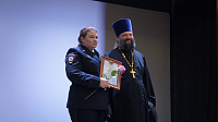 С пастырским словом к собравшимся обратился благочинный Каширского церковного округа священник Валерий Сосковец, отметивший высокую честь служения для сохранения общего порядка и мира. Отец Валерий вручил благодарственные грамоты отличившимся сотрудникам полиции г.о. Кашира.