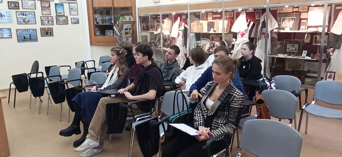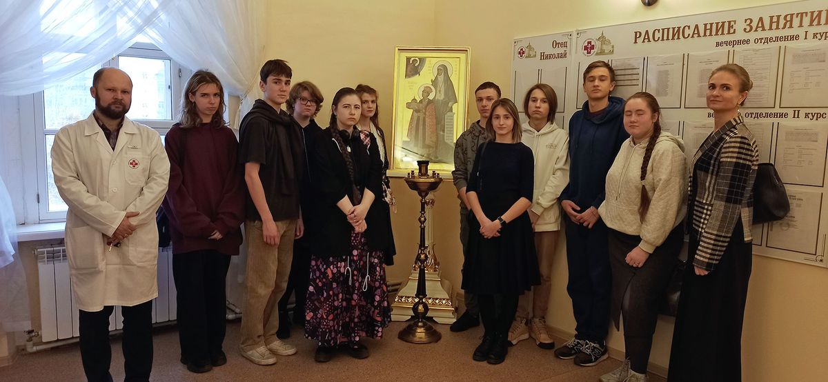 Школьников пригласили в музей истории общин сестёр милосердия. Этот совсем небольшой музей состоит всего из 15 витрин, но несмотря на скромные размеры, музей удивительно разнообразен: здесь можно увидеть самые разные экспонаты — начиная от формы сестер милосердия XIX–XX веков и заканчивая орденами великих российских врачей и даже церковной утварью. Такое разнообразие связано с историей общин сестер милосердия, которая начинается в монастырях, где лечили не только дух, но и тело задолго до того, как в XIX веке в России появились первые лечебные заведения. Большую помощь в организации общины сестер милосердия в начале 19 века оказала супруга Московского градоначальника великая княгиня Елизавета Федоровна.