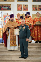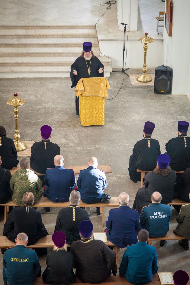 Перед началом собрания состоялась Божественная литургия, которую возглавил председатель Отдела по взаимодействию с Вооруженными силами, правоохранительными органами и казачеством Коломенской епархии, благочинный 2-го Воскресенского округа протоиерей Сергий Рыбаков. Вместе с сотрудниками Отдела и прихожанами храма за Богослужением молились представители Вооружённых сил, правоохранительных органов, МЧС и казачества. По окончании Божественной литургии протоиерей Сергий вручил благодарственные грамоты митрополита Крутицкого и Коломенского Павла представителям силовых структур, активно взаимодействующим с Коломенской епархией. Грамотами Отдела были награждены и священнослужители на протяжении многих лет несущие послушание по окормлению военнослужащих.