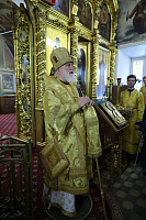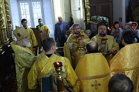 Его Высокопреосвященству сослужили: секретарь Коломенского епархиального управления протоиерей Андрей Рыбин, благочинный 1-го Воскресенского округа протоиерей Сергий Якимов, настоятель храма протоиерей Евгений Егоров и клирики благочиния.