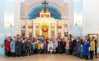 27 ноября в Троицком соборе г. Яхромы в очередной раз прошло торжество памяти священномученика Сергия Константинова. Божественную литургию и Крестный ход вокруг Собора возглавил благочинный Яхромского округа настоятель Троицкого собора г. Яхромы священник Сергий Бернацкий. Воспитанники воскресной школы выступили перед прихожанами с концертом, после которого все участники торжества собрались в трапезной Собора за праздничными столами.