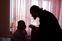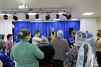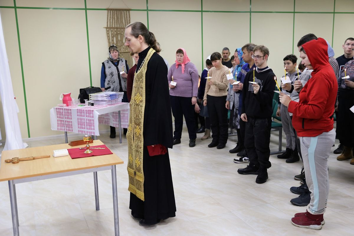 Иерей Иоанн совершил молебен в актовом зале, побеседовал с проживающими и сотрудниками и вручил в подарок наборы для творчества. После чего иерей Иоанн посетил тяжелобольных в двух корпусах интерната, причастив их Святых Христовых Тайн.