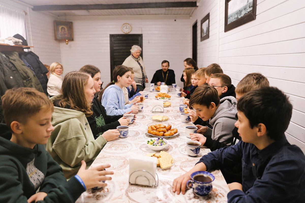 Также в этот день кадеты под руководством иерея Иоанна навестили детей-сирот, проживающих в ГБСУ СО МО «Семейный центр «Коломенский». Гости провели для воспитанников интерната интерактивно-театральную программу и передали сладкие подарки.