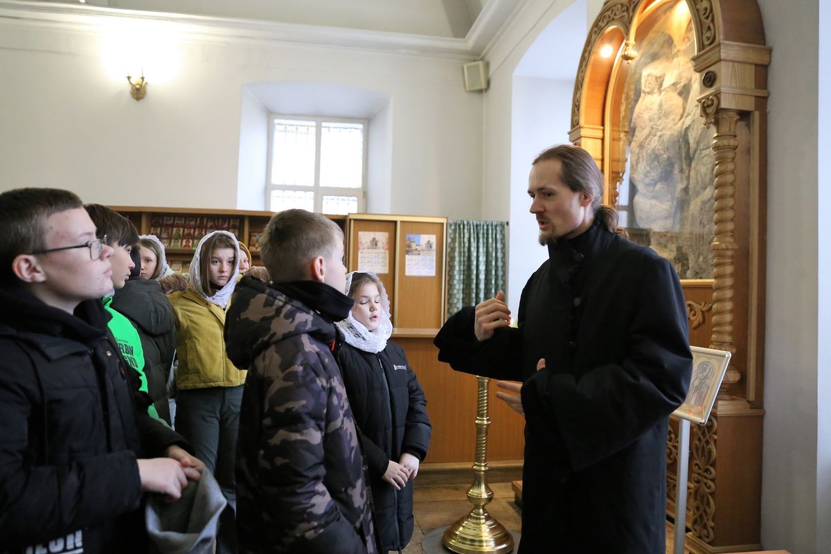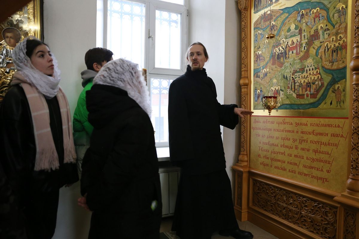 3 декабря 2022 года Иоанно-Богословский храм города Коломна посетила группа учащихся из Кадетской школы г. Люберцы. Настоятель храма иерей Димитрий Варламов и председатель Отдела по миссионерской работе и делам молодежи Коломенское епархии иерей Иоанн Бакушкин провели с юными паломниками беседу и ответили на их вопросы, после чего вместе с ребятами поднялись на смотровую площадку колокольни Иоанно-Богословского храма – самую высокую точку обзора в Коломне. Завершилась встреча чаепитием, во время которого экскурсовод рассказала кадетам об истории города.