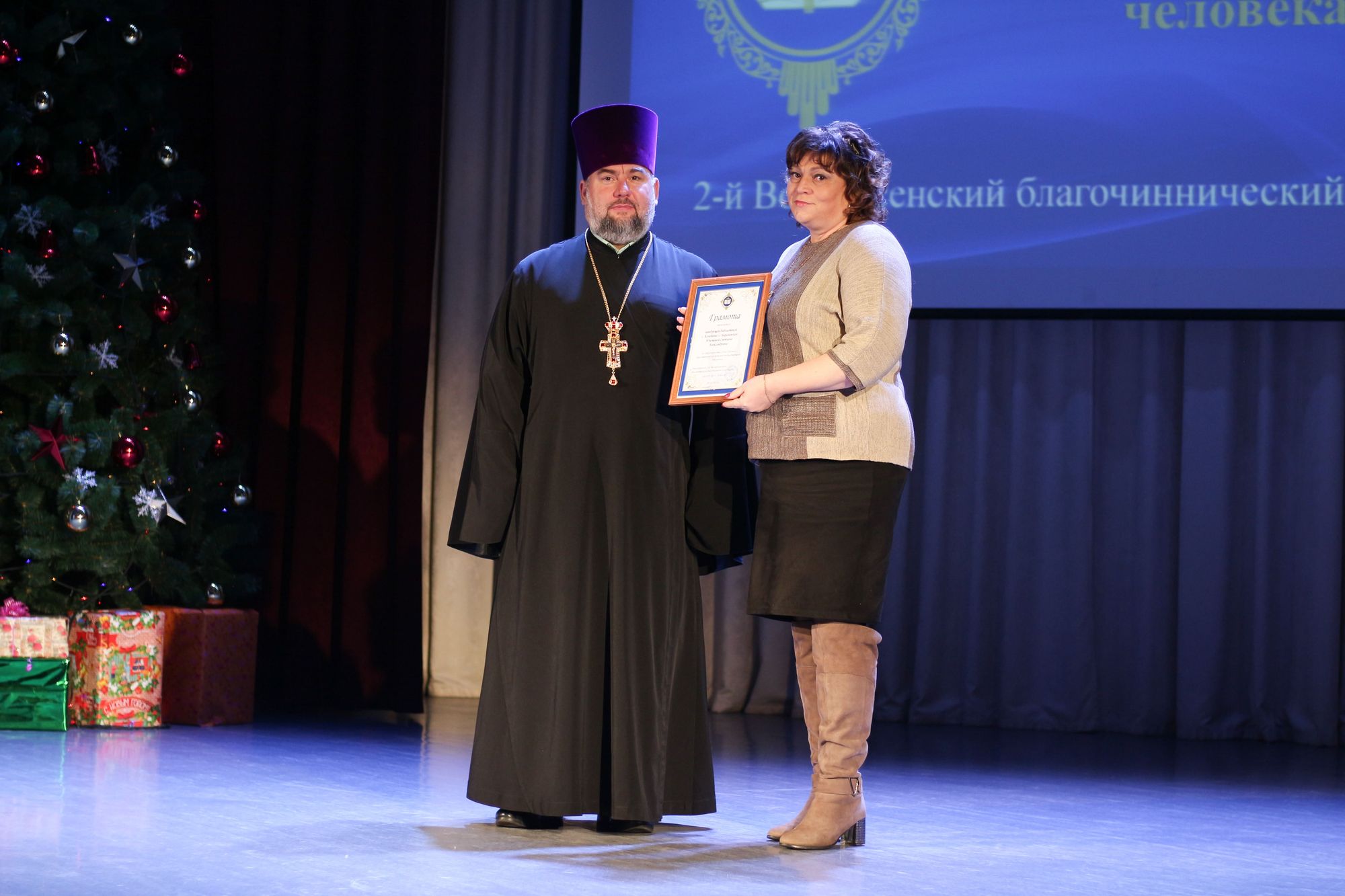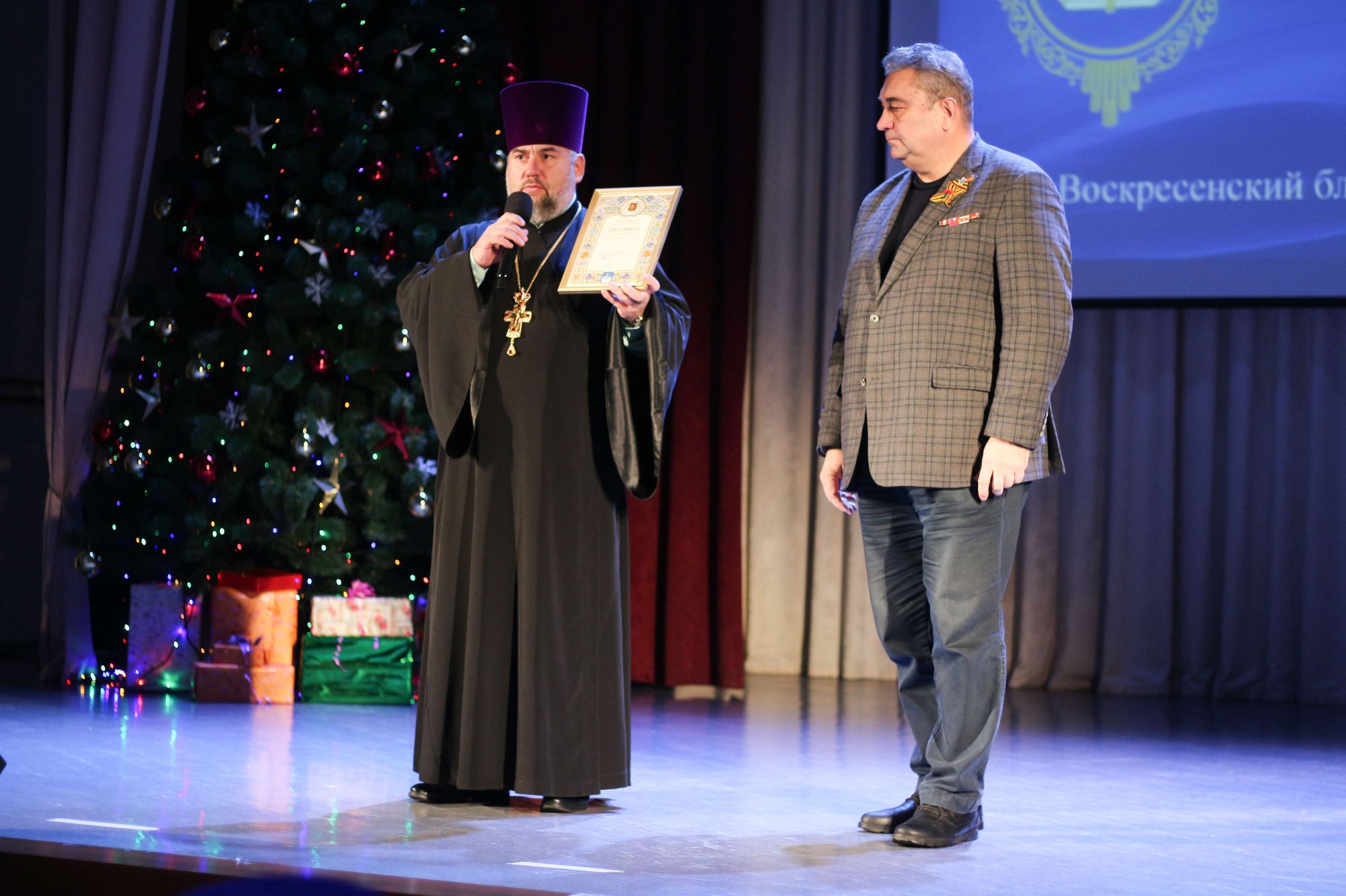 В ходе мероприятия грамотой митрополита Крутицкого и Коломенского Павла был награжден председатель Воскресенского отделения Всероссийской общественной организации «Боевое братство» Ю.Ф. Слепцов. Грамотами благочинного за многолетний и плодотворный труд в деле духовно-нравственного воспитания были награждены священники, педагоги воскресных школ, учителя общеобразовательных учреждений, сотрудники центров патриотического и спортивного направлений, а также сотрудники домов культуры и библиотек, которые на протяжении многих лет активно взаимодействуют с приходами храмов благочиннического округа в деле духовно-нравственного и патриотического воспитания.