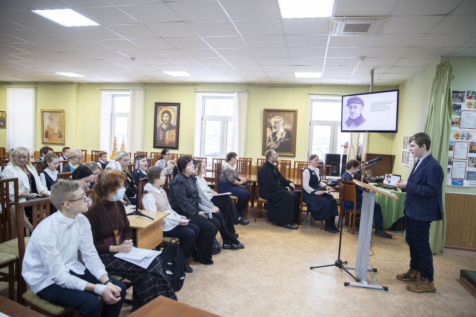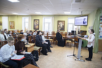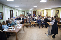 Представление проектов проходило в двух секциях по возрастным группам. Выступили 19 докладчиков из 9 школ, раскрыв в своих исследованиях подвиг людей разных профессий и времён на благо страны и показав важность их духовного выбора – служения людям.