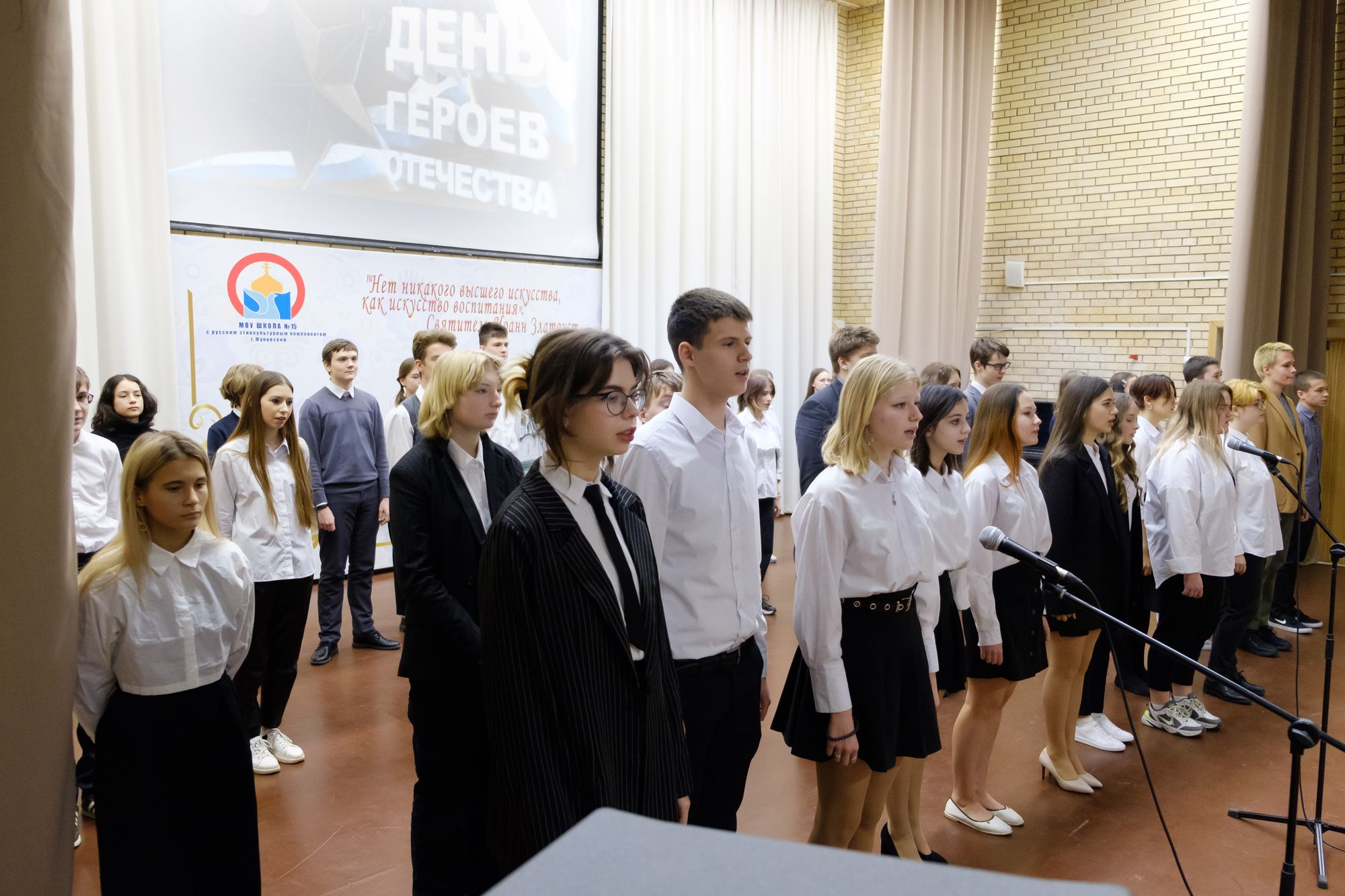 9 декабря в актовом зале школы №15 с этнокультурным компонентом города Жуковского состоялась праздничная встреча, посвященная Дню Героев Отечества. На сегодняшний день в городе зарегистрировано более 100 Героев Советского Союза и России.
