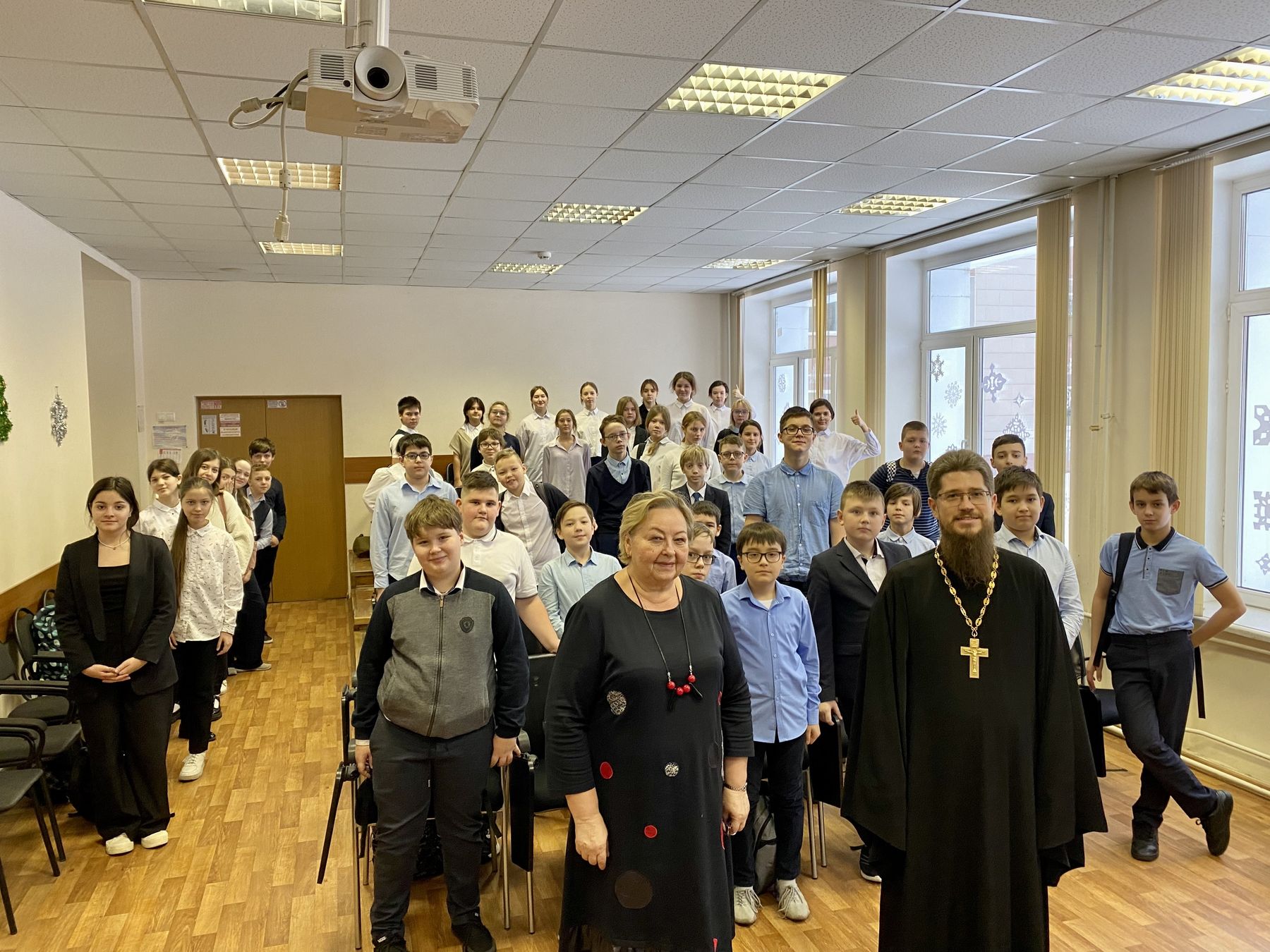 26 декабря состоялась встреча настоятеля храма Казанской иконы Божией Матери деревни Богослово священника Антония Коваленко с учащимися 10-11 классов Лицея г. Фрязино.