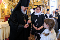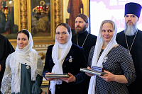 Владыка Николай вручил Патриаршие знаки материнства жёнам клириков Балашихинской епархии, которые воспитывают пятерых и более детей.