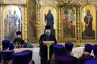 Перед началом собрания была вознесена молитва о упокоении почившего в уходящем году клирика Балашихинской епархии протоиерея Александра Шарапова, а также вождей и воинов на поле брани убиенных.
