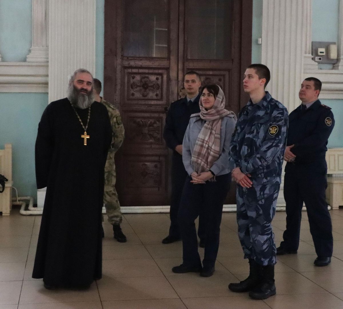 По окончании молебна отец Сергий провел для гостей экскурсию по Троицкому собору, рассказал об истории и архитектуре храма, а также о ходе реставрации святыни. Заместитель благочинного и ответственный по работе с вооруженными силами и правоохранительными органами в Яхромском благочинии протоиерей Димитрий Колупаев сделал доклад о работе с военными, после чего были подписаны планы мероприятий на 2023 год.
