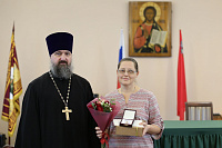 29 декабря в актовом зале Православной гимназии имени священномученика Константина Богородского благочинный Богородского церковного округа протоиерей Марк Ермолаев вручил Патриаршие знаки материнства многодетным жёнам клириков Богородского благочиния: Татьяне Фроловой, Галине Ладик и Ольге Пархоменко.
