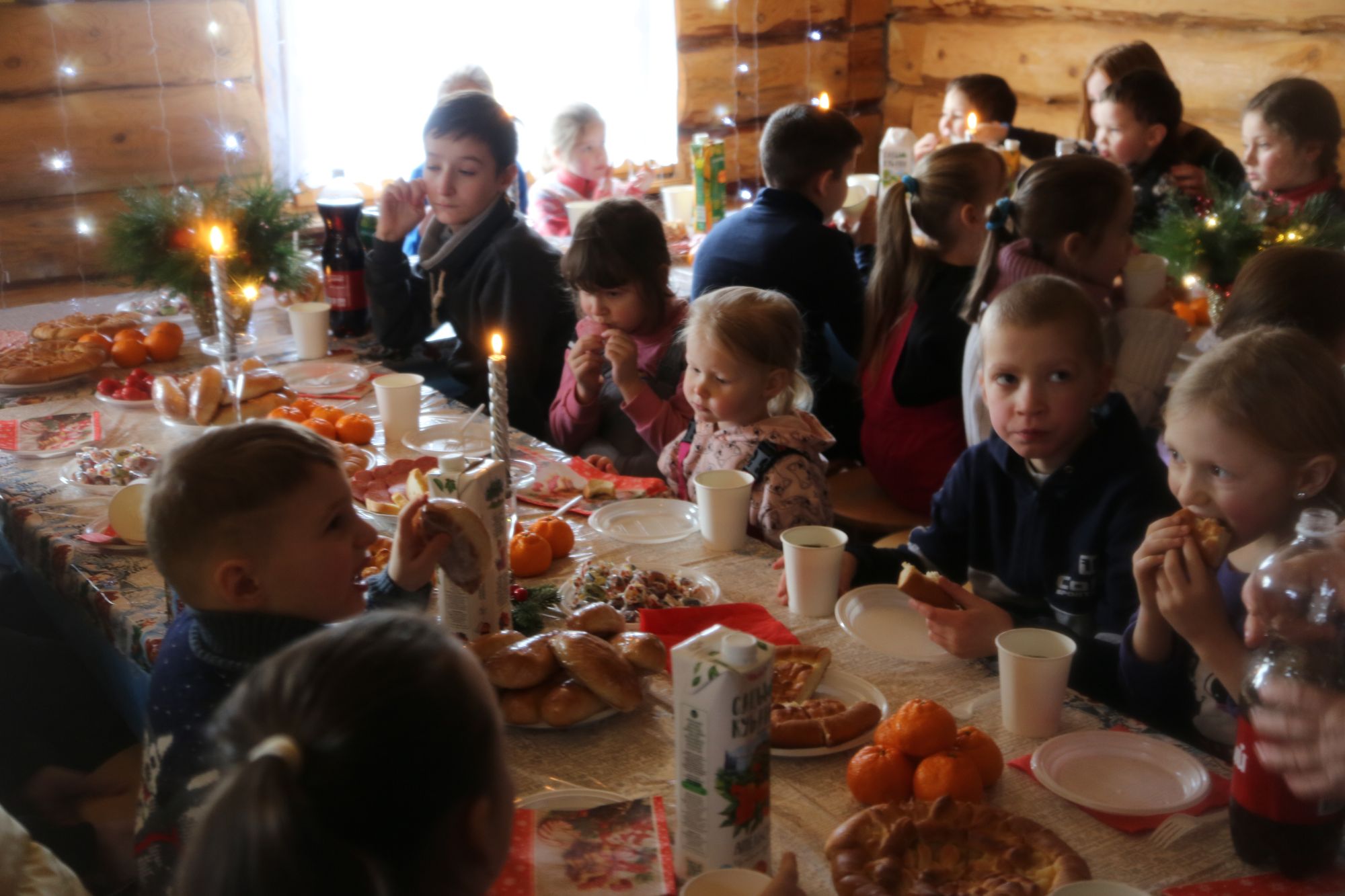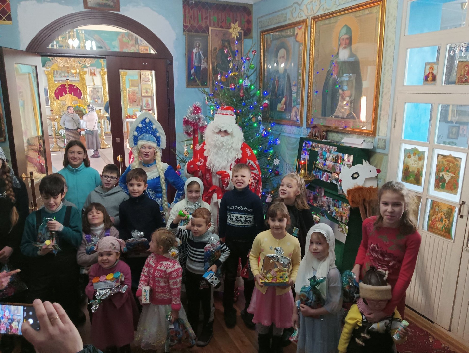 Настоятель храма иерей Александр Сирин обратился к прихожанам, детям и их родителям с поздравительным словом и вместе со своей семьей спел несколько колядок. На праздник прибыли Дед Мороз и Снегурочка, которые вместе с детьми организовали веселые эстафеты, игры, песни, хороводы, и, конечно, каждому ребенку были вручены подарки. Праздник продолжился душевным чаепитием. Смех, радость и веселое настроение было обеспечено каждому!