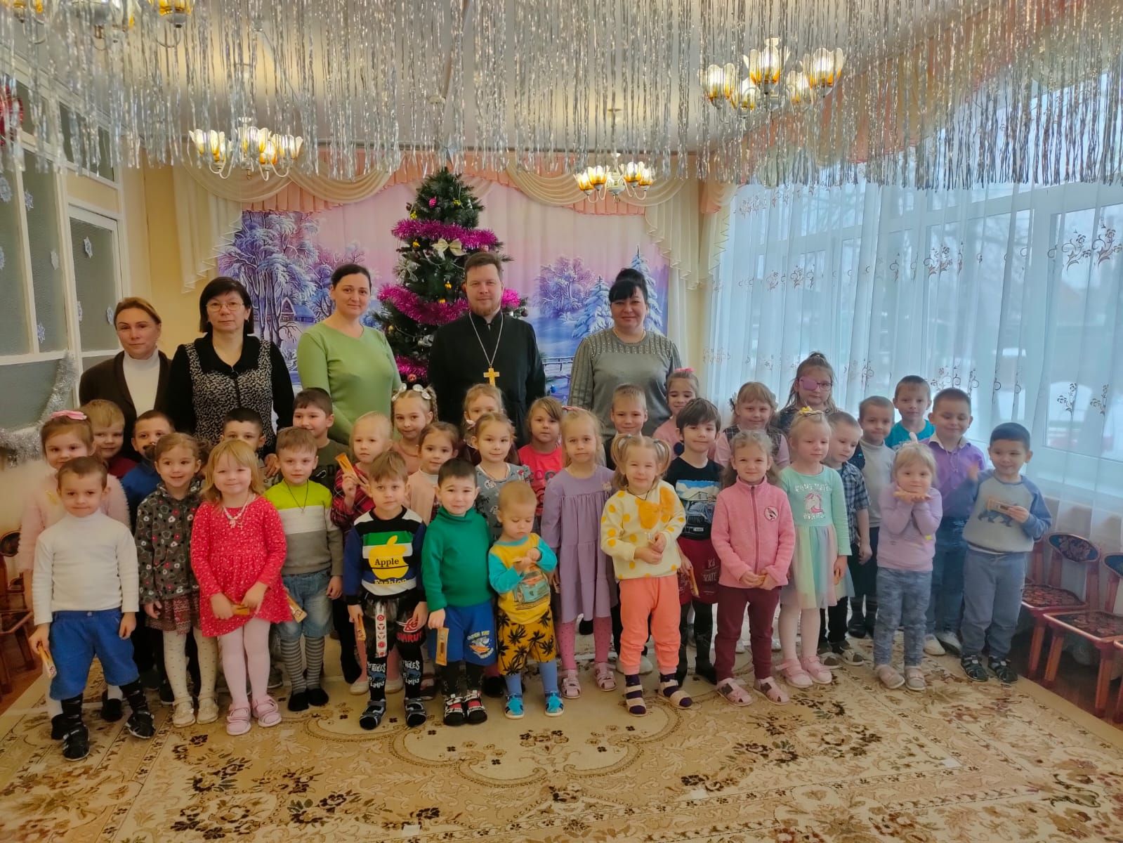 11 января в Карасёвской СОШ (дошкольное отделение) прошёл праздник, посвящённый Рождеству Христову. Мероприятие посетил настоятель Покровского храма д. Малое Карасёво иерей Павел Чесноков, который рассказал детям о истории праздника, провёл викторину и вручил сладкие подарки.