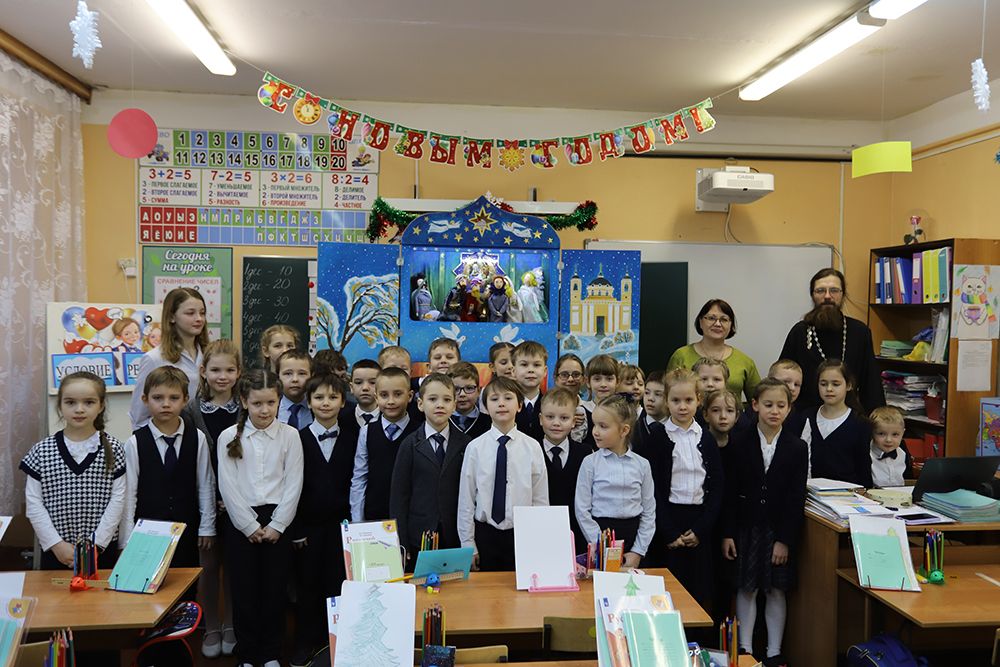 10 января в МБОУ СОШ №15 г. Коломны прошло представление Рождественского вертепа Свято-Духовского храма села Шкинь. Настоятель храма иерей Дионисий Киндюхин поздравил ребят с праздником Христова Рождества, рассказал им о событиях этого праздника, о Чуде Рождества Спасителя.