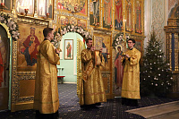 Его Высокопреосвященству сослужили: секретарь Коломенского епархиального управления, ключарь кафедрального собора протоиерей Андрей Рыбин и клирики храма.
