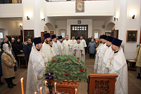 13 января, в день отдания праздника Рождества Христова, в Преображенском храме г. Долгопрудный состоялось соборное служение Божественной литургии, которое возглавил благочинный Долгопрудненского церковного округа протоиерей Андрей Хмызов.