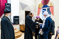 Его Высокопреосвященство сопровождали благочинный Подольского церковного округа иерей Серафим Покатилов и секретарь Епархиального отдела по благотворительности и социальному служению Подольской епархии Е.Н. Самоделкина.