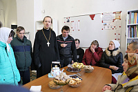 Проживающие в данном интернате регулярно посещают Богослужения, исповедуясь и причащаясь Святых Христовых Тайн вместе с прихожанами. По окончании праздничной Божественной литургии и чина великого освящения воды для гостей из интерната было организовано чаепитие, во время которого иерей Иоанн отвечал на их вопросы.