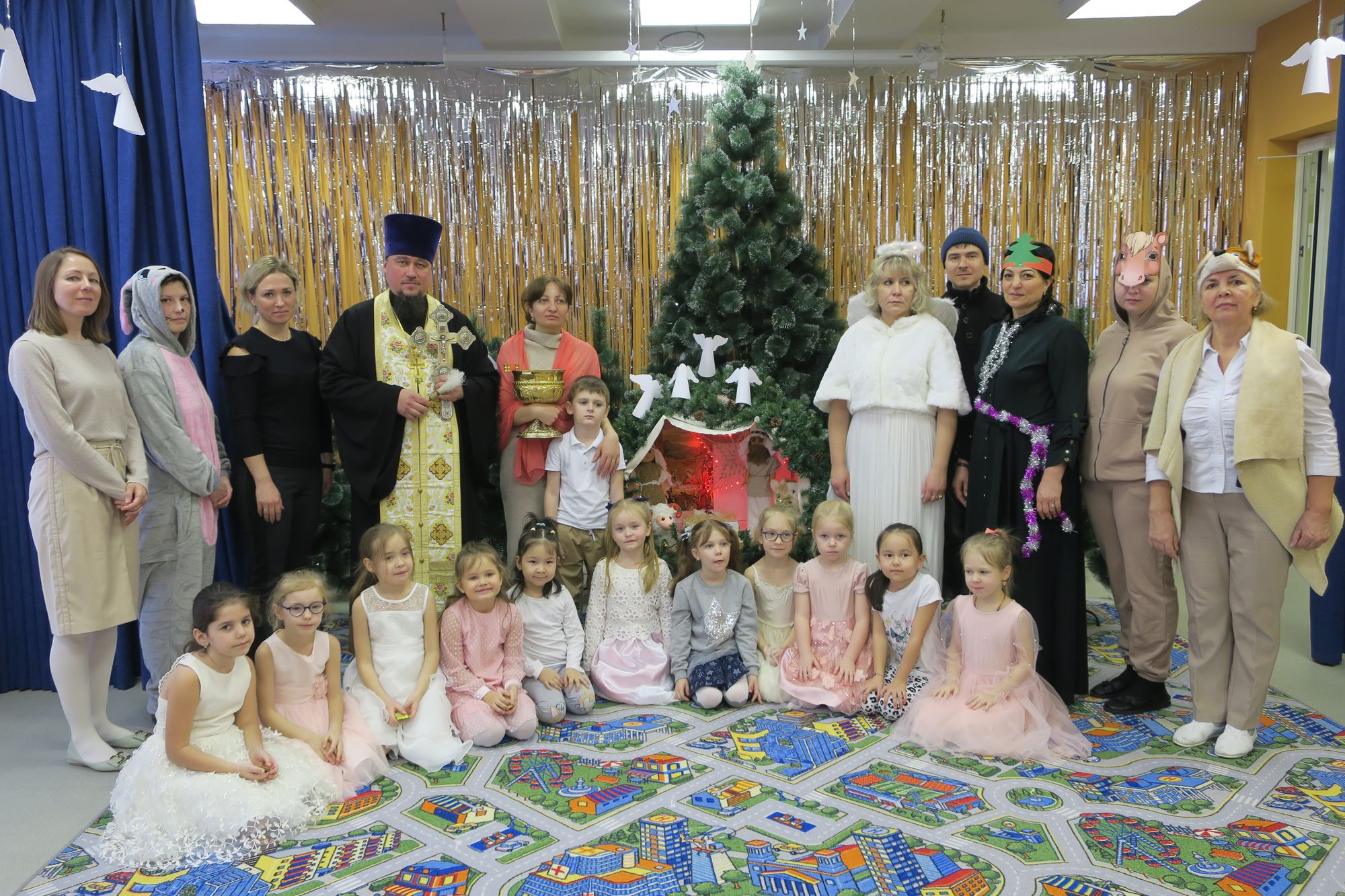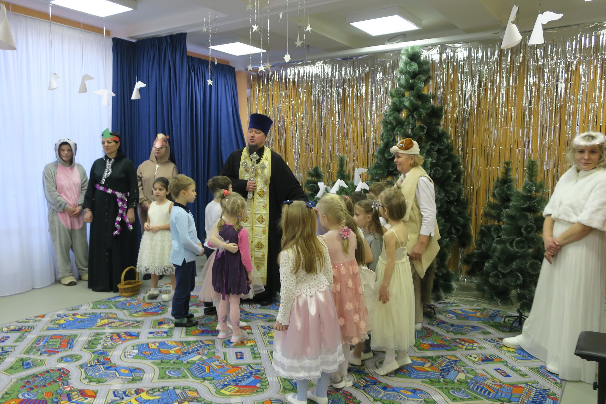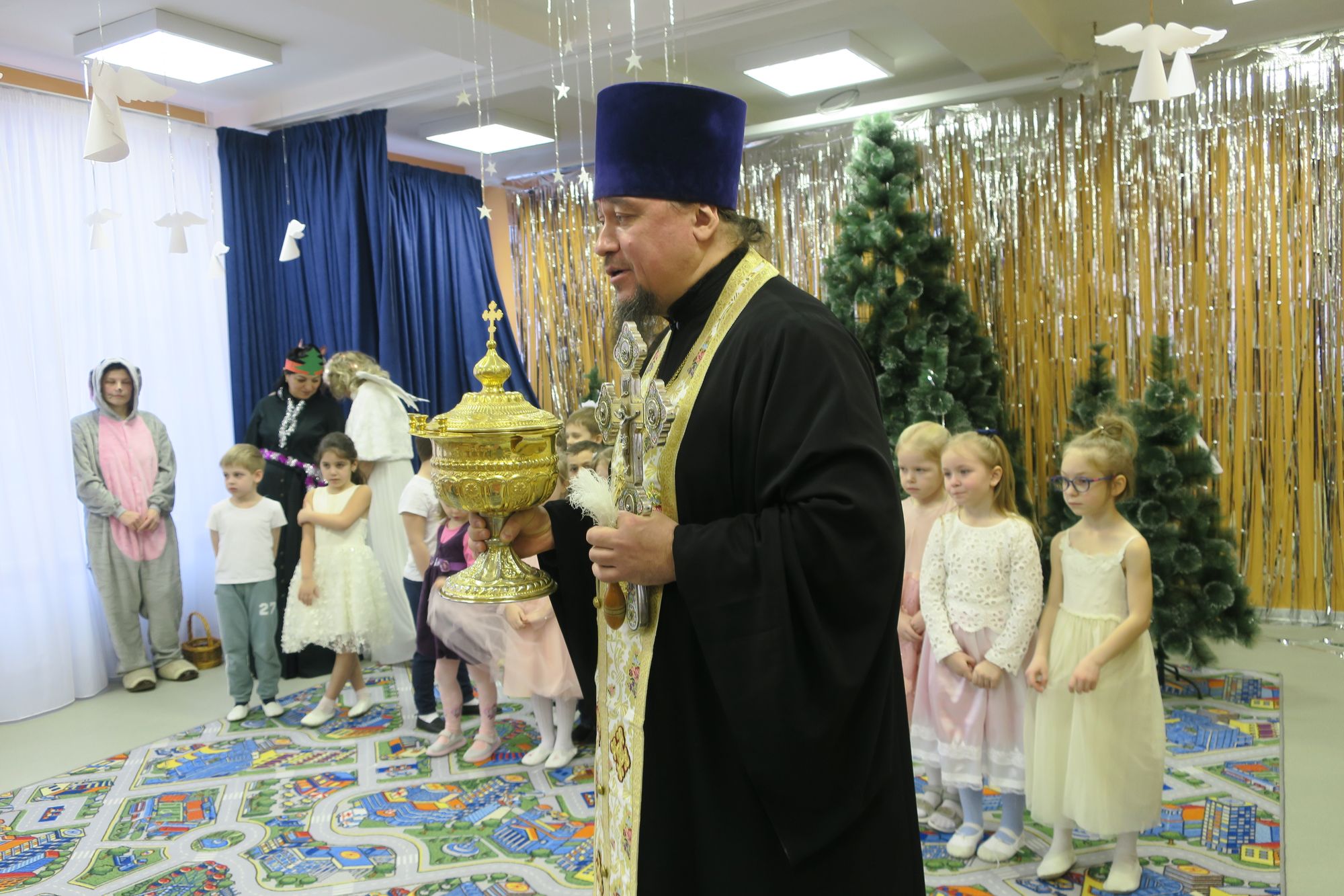 В праздник Крещения Господа Бога и Спаса нашего Иисуса Христа во всех храмах Мытищинского благочиния была совершена Божественная литургия, по окончании которой состоялось Великое освящение воды. В ночь с 18 на 19 января в городском округе Мытищи духовенство благочиния совершило чин Великого освящения воды на открытых водоемах и купальнях, в специальной отведенных для этого районными службами местах, сооруженными в разных поселениях. В приходах Мытищинского благочиния прошли торжества и праздничные мероприятия, посвященные празднику Богоявления, так, 20 января 2023 года настоятель Преображенского храма в Пирогово протоиерей Сергий впервые посетил детский праздник в новом детском саде №78 «Умка». Коллектив детского садика, вместе с воспитанниками выпускных старших групп организовали большой, красочный праздник, посвящённый Богоявлению. Святочное действо, посвящённое пришествию в мир Спасителя, дополнилось дружным пением и нежными детскими танцами. По завершении детского Богоявленского праздника, протоиерей Сергий поздравил с минувшим праздником Рождества Христова и с праздником Просвещения. На прощание с воспитанниками дошкольного образовательного учреждения, ради праздника Крещения Господня, настоятель Преображенского храма окропил всех крещенской святой водой. На детском празднике присутствовала заведующая МБДОУ №78 «Умка» Наталья Евгеньевна. После праздничного мероприятия, в кругу сотрудников, состоялась беседа с руководителем Пироговского детского сада. Протоиерей Сергий выразил надежду на продолжение полезного сотрудничества, преподавания предмета православной культуры и проведения добрых христианских утренников, посвящённых святой Пасхе и Богоявлению.