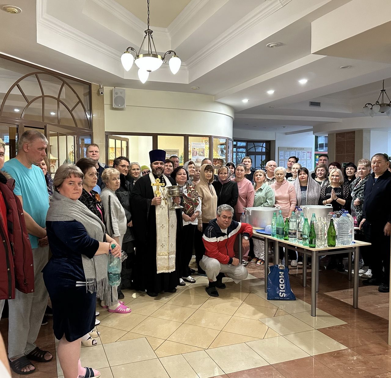 С великой радостью был встречен праздник Крещения Господня в Федоскино. В Никольском храме и близ лежащих санаторно-лечебных учреждениях деревни Аксаково было совершено Великое освящение воды, где отдыхающие и находящиеся на лечении с разных уголков России смогли присутствовать на чине Великого освящения воды, послушать пастырское слово и набрать крещенской воды, чтобы пользоваться ею круглый год! Настоятель храма протоиерей Алексей Кузьменко вместе с хористами поздравили студентов Федоскинского художественного института с праздником, и после концертного выступления ребятам и педагогам были подарены сладкие подарки и книги с православной прозой.