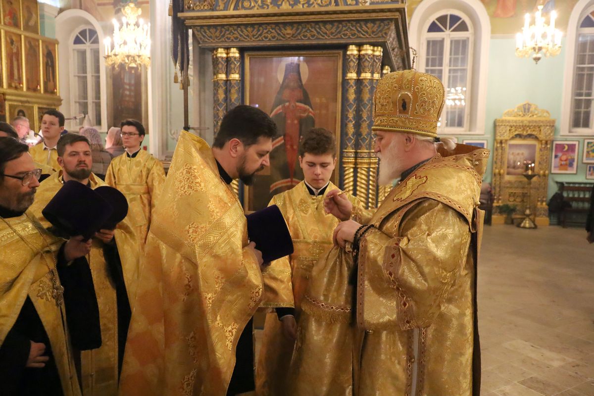 Его Высокопреосвященству сослужили: секретарь Коломенского епархиального управления, ключарь кафедрального собора протоиерей Андрей Рыбин и клирики собора.