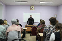 Отец Валентин поговорил с участниками встречи о воспитании детей и взаимоотношениях внутри семьи, поделился опытом своего отцовства, ответил на вопросы аудитории.