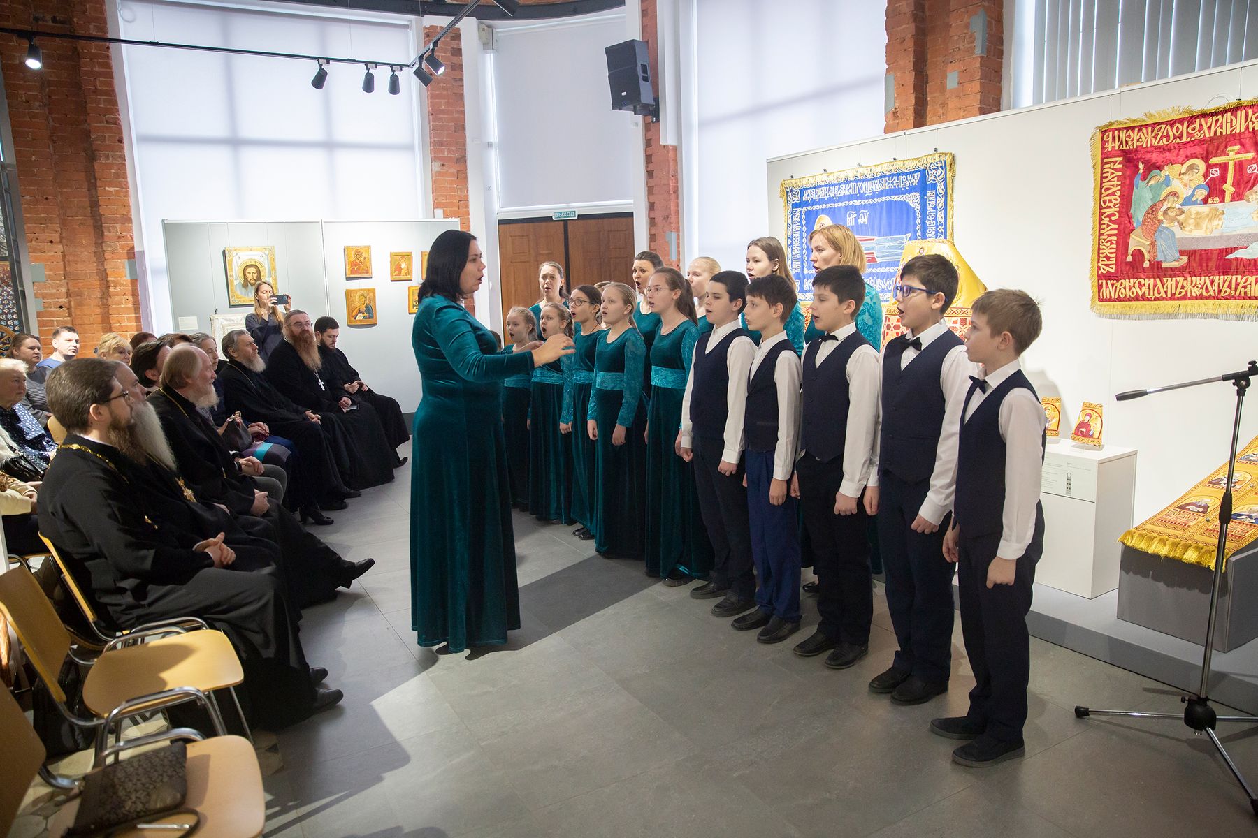 Выставка открылась выступлением сводного хора Православной Алексеевской гимназии и воскресной школы Троицкого собора г. Щёлково.