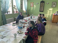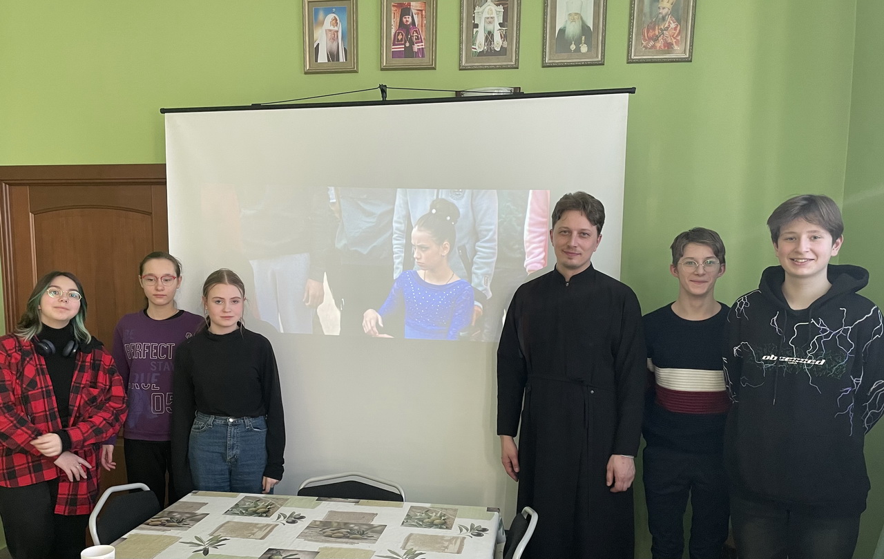 За чаем с масленичными блинами ребята вместе с клириком храма священником Иоанном Слобжиным посмотрели кино и обсудили поднимаемые в нем проблемы инклюзивности в молодежной среде.