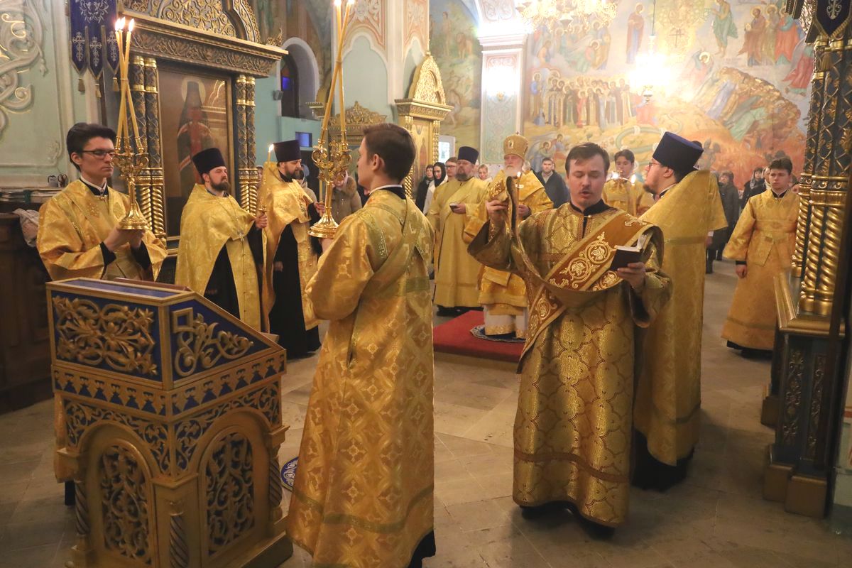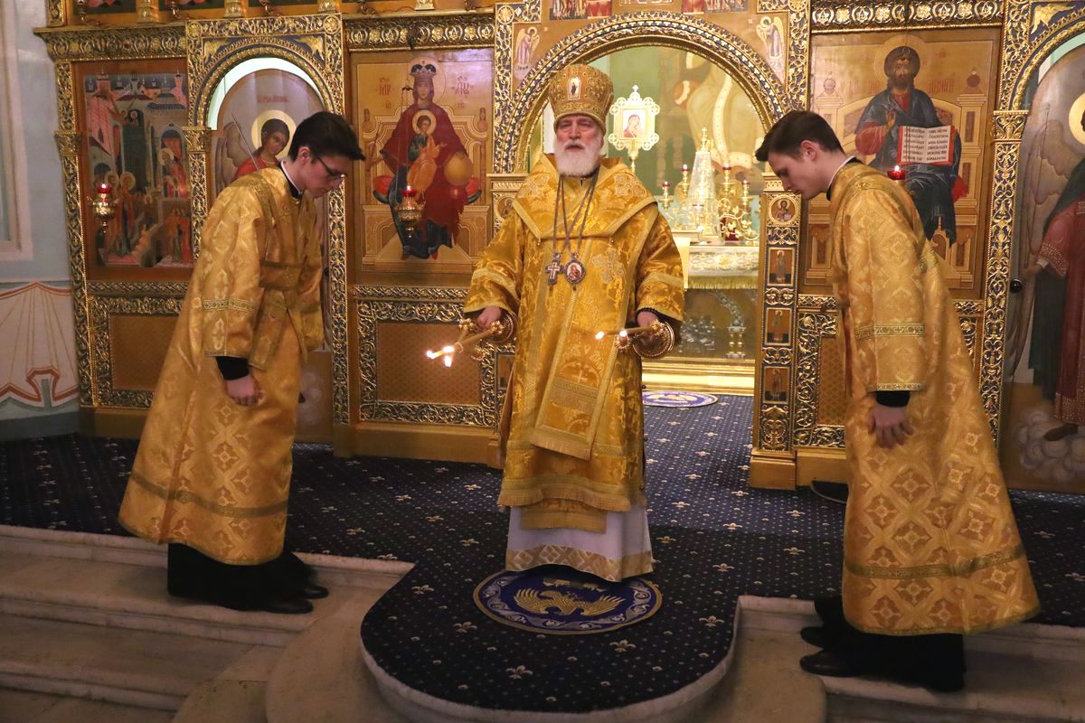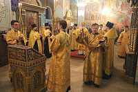 Богослужебные песнопения исполнил соборный хор под управлением Наталии Камышниковой.