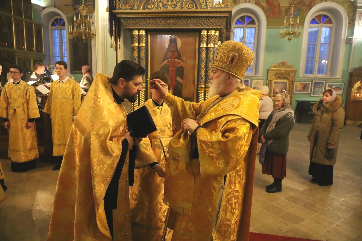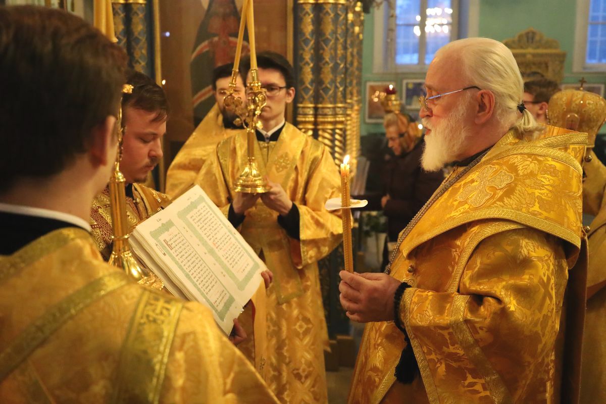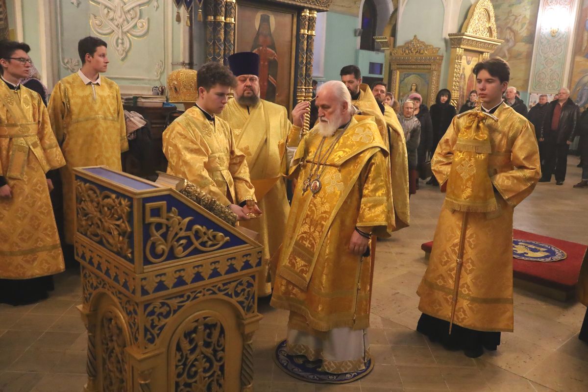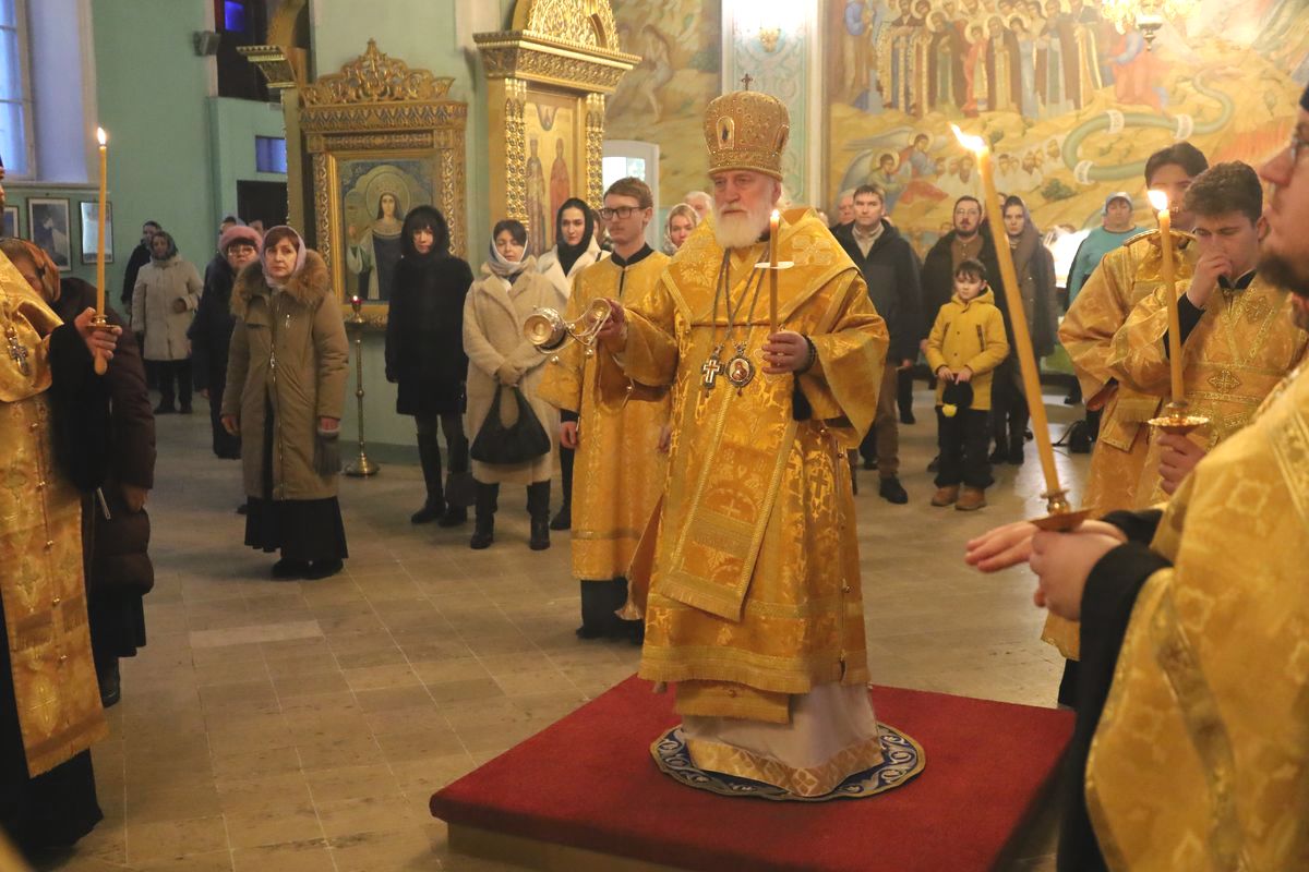 25 февраля 2023 года, накануне недели сыропустной, воспоминания Адамова изгнания, прощёного воскресенья, митрополит Крутицкий и Коломенский Павел возглавил всенощное бдение в Тихвинском храме Успенского кафедрального собора города Коломны.
