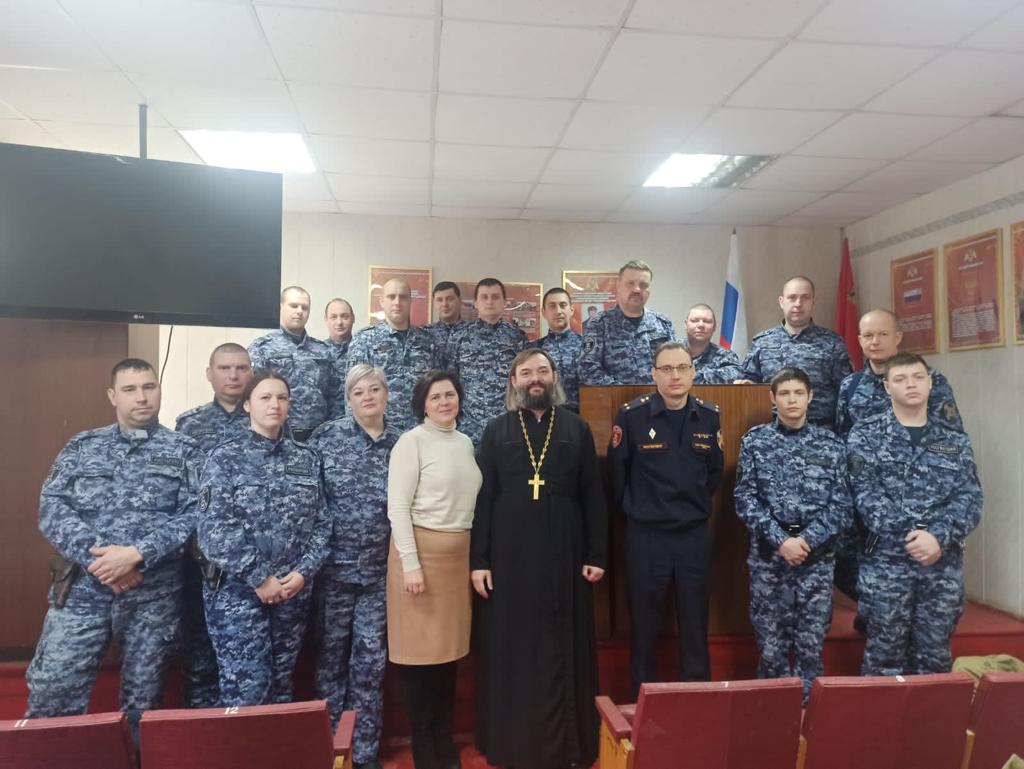 2 марта состоялась встреча сотрудников Каширского отдела вневедомственной охраны филиала ФГКУ ОВО ВНГ России по Московской области с благочинным Каширского церковного округа иереем Валерием Сосковцом. Отец Валерий подробно рассказал о предназначении человеческой жизни и ответил на вопросы слушателей.