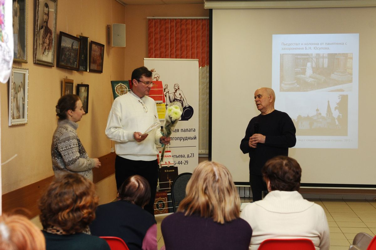 Лекция входила в цикл ежемесячных выступлений городских краеведов. Было рассказано о владельцах имения – князьях Сулешевых, Репниных и Юсуповых. Особое внимание было уделено состоянию усадьбы в период расцвета при князе Н.Б. Юсупове, также речь шла о захоронениях князей Юсуповых в храме. Рассмотрена судьба усадьбы и храма после революции.