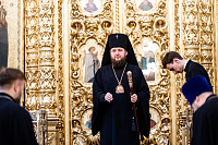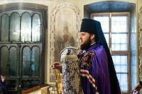 Его Высокопреосвященству сослужили клирики Троицкого собора.