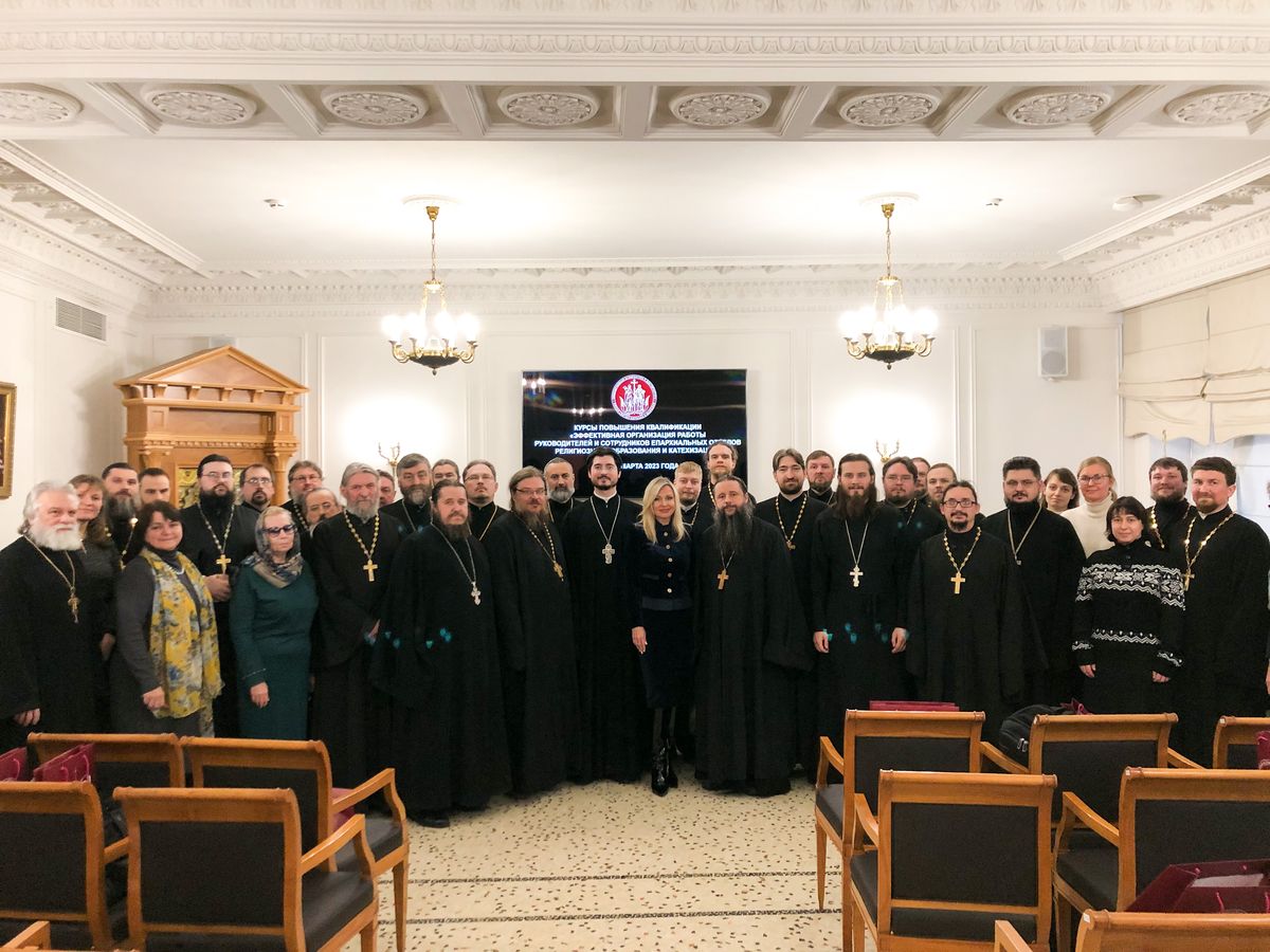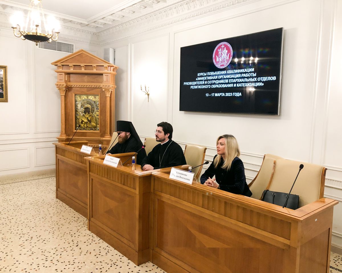 13 марта 2023 года в актовом зале Общецерковной аспирантуры и докторантуры имени равноапостольных Кирилла и Мефодия в Москве состоялось открытие курсов повышения квалификации для сотрудников епархиальных отделов религиозного образования и катехизации.