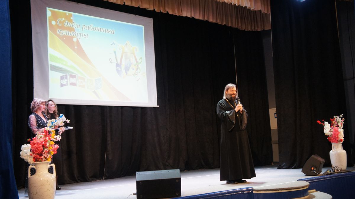 Со словами поздравления к работникам культуры обратился благочинный Каширского округа священник Валерий Сосковец. Отец Валерий рассказал о возникновении культуры в допотопный период истории человечества, о культуре в Ветхозаветные времена и о предназначении культуры в наше время.
