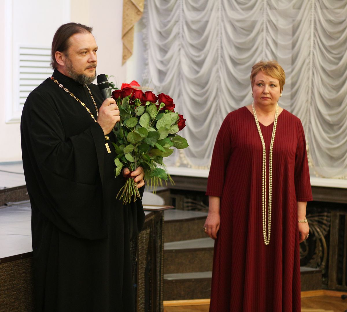 С приветственным словом выступил благочинный 1-го Воскресенского благочиннического округа протоиерей Сергий Якимов, выразив особую благодарность руководителю творческого объединения Белоус Светлане Спартаковне.