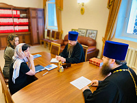 27 марта в Казанском храме города Павловский Посад состоялась рабочая встреча благочинного церквей Павлово-Посадского округа священника Александра Анохина с заместителем главы городского округа Павловский Посад С. Ю. Аргуновой и начальником управления образования Е. В. Ларьковой.