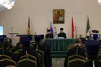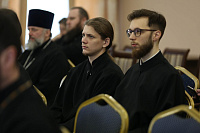 На совещании обсуждались рабочие вопросы. Затем в рамках практического семинара перед священнослужителями выступил кандидат медицинских наук Дмитрий Мирошниченко с докладом об актуальных вопросах биоэтики.