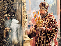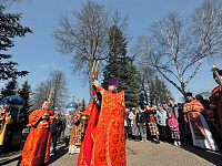 В конце богослужения состоялся крестный ход, по окончании которого Владыка обратился к присутствующим со словами пасхальной проповеди о Воскресении Христовом и Его искупительной Жертве за грехи человека.