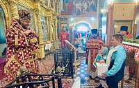 Также архипастырь благословил и вручил пасхальные подарки воспитанникам школы-интерната, которые все в этот день причастились Святых Христовых Таин.