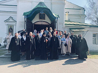 Его Высокопреосвященству сослужили; благочинный церквей Волоколамского округа протоиерей Герман Григорьев, благочинный Шаховского округа священник Андрей Тарасов, благочинный Клинского округа Сергиево-Посадской епархии священник Михаил Поляков, председатель Епархиального отдела образования и катехизации протоиерей Владислав Гусар, члены упомянутого отдела и духовенство Епархии.