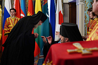Избранный к архиерейскому служению священнослужитель обратился к Святейшему Патриарху Кириллу и сослужившим Его Святейшеству архипастырям со ставленническим словом.