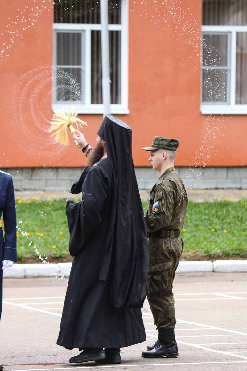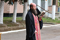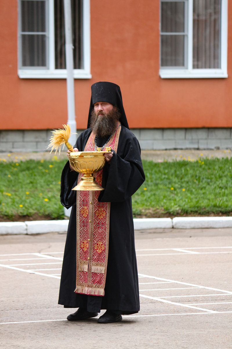 Протоиерей Сергий Рыбаков поблагодарил руководство воинской части за многолетнее сотрудничество и вручил благодарственную грамоту от Епархиального отдела за вклад в военно-патриотическое воспитание подрастающего поколения. Иеромонах Илия (Киреев) в знак благословения окропил личный состав воинской части святой водой.
