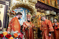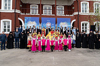 Богослужебные песнопения исполнил хор Владычнего монастыря под управлением игумении Алексии (Петровой).